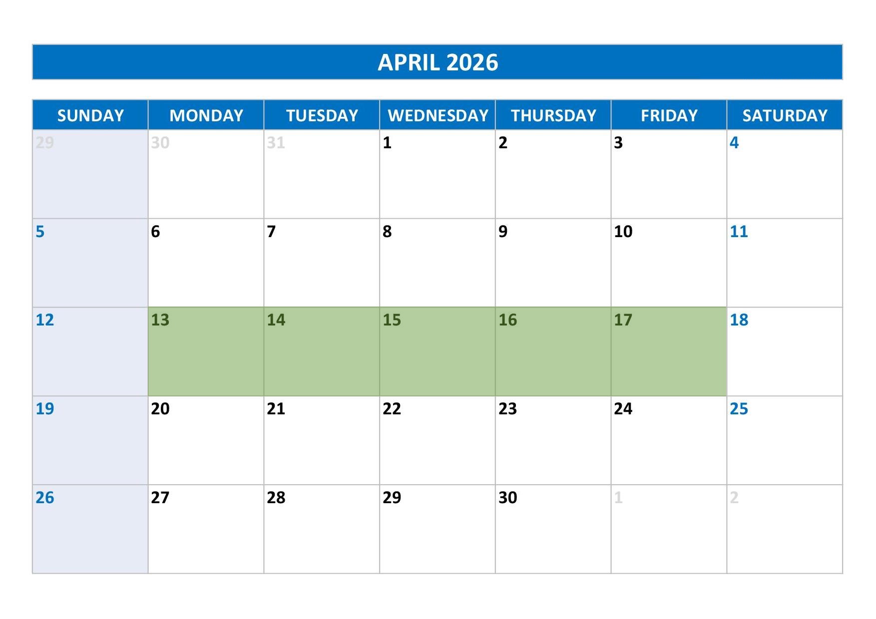 April 13 - April 17, 2026 8:00am - 5:00pm Central Time Exam is administered in person on Friday (DFW AREA)