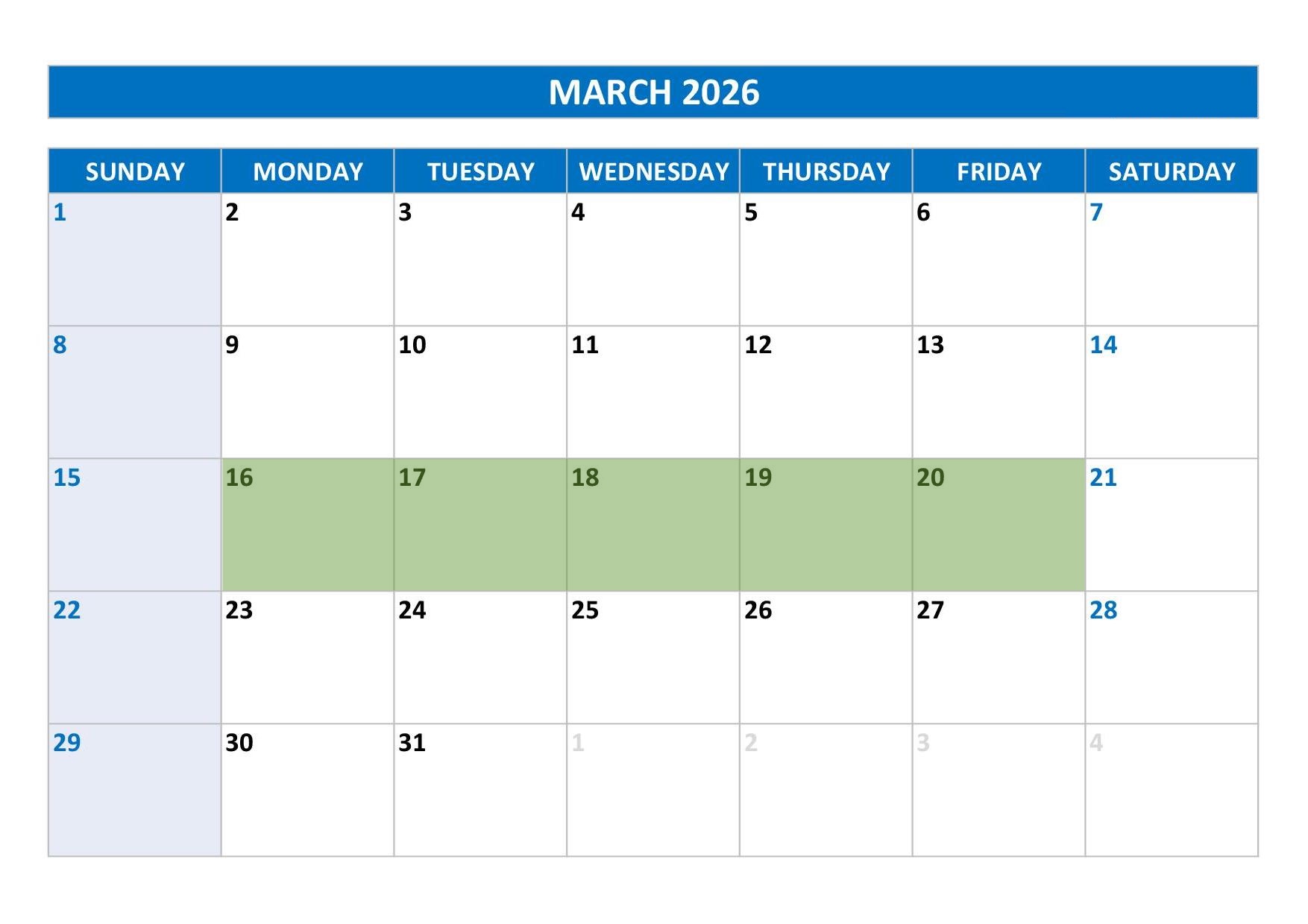 March 16 - March 20, 2026 9:00am - 4:00pm Central Time