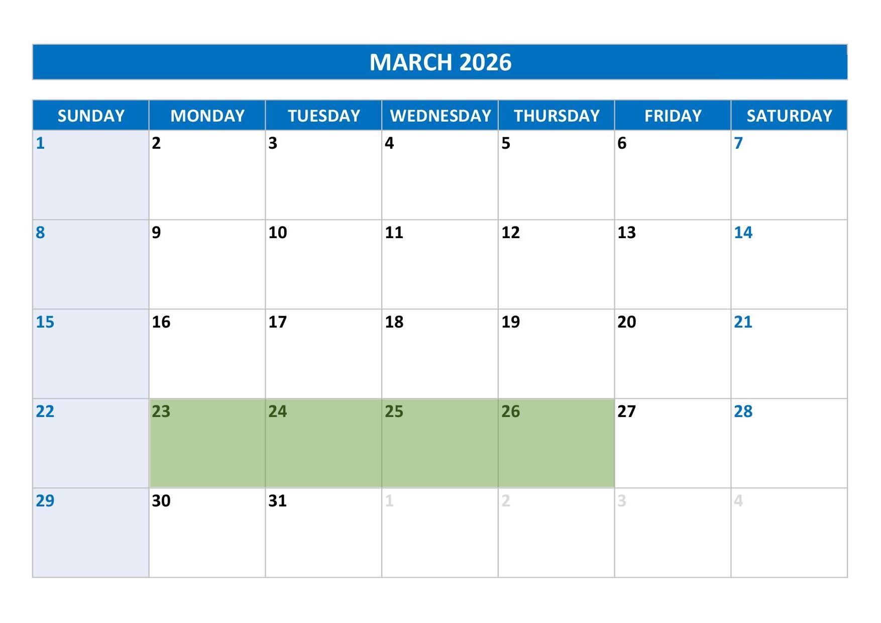 March 23 - March 26, 2026 9:00am - 4:00pm Central Time